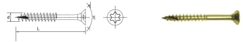 Wkręt do drewna i płyt wiórowych z łbem stożkowym płaskim , ocynkowany na żółto ,