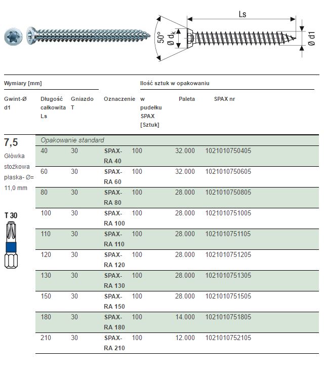 – gniazdo SPAX T-STAR plus hartowane ,