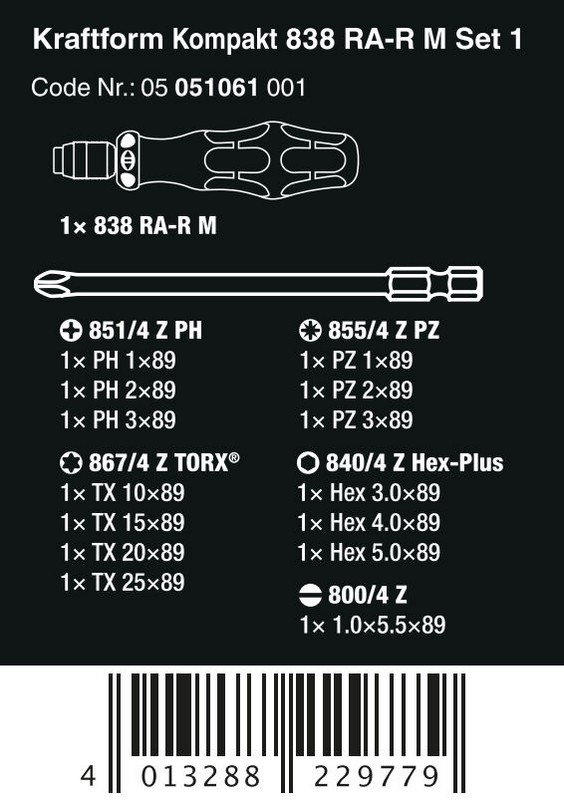 WKRĘTAK KRAFTFORM KOMPAKT Z GRZECHOTKĄ 838 RA-R M SET 1,15CZ