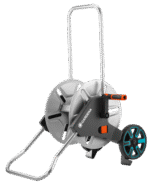 Wózek na wąż GARDENA CleverRoll M Metal jest wyjątkowo solidną konstrukcją, która sprosta nawet najcięższym warunkom w ogrodzie. Wózek umożliwia wygodne i oszczędzające miejsce przechowywanie węża ogrodowego. Do nawijania węża na bęben służy ergonomiczna, plastikowa korba z miękkimi elementami. Składana stopa wózka zapewnia wysoką stabilność. Specjalny kształt i wysokie położenie kół dodatkowo pomagają utrzymać wózek w pozycji stojącej. Składana podstawa, opuszczana rączka i składana korba dbają o to, by po złożeniu produkt zajmował jak najmniej miejsca.