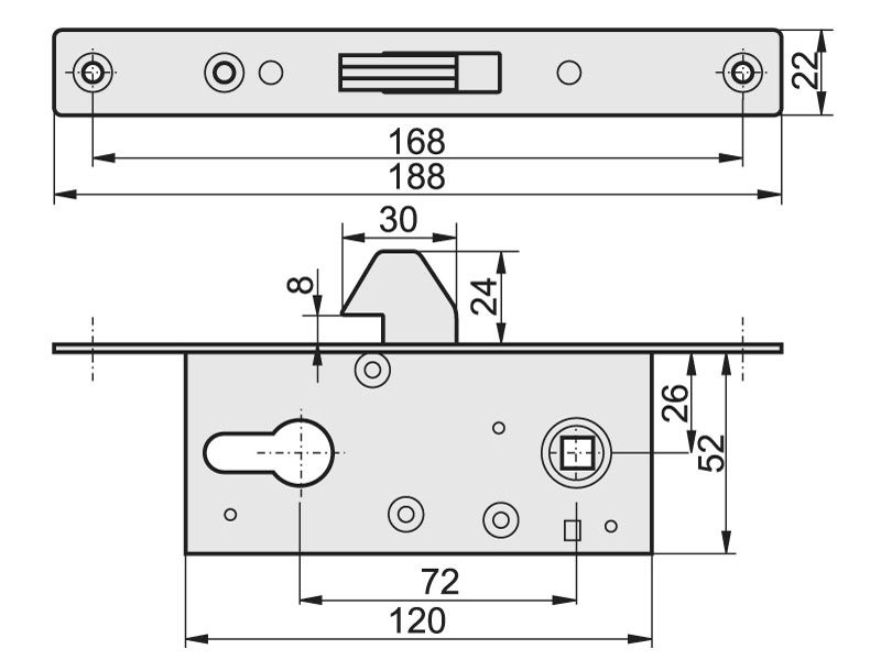 Zamek hakowy H-60 przeznaczony jest do bram wjazdowych przesuwnych, w których wymagane jest samo zatrzaśnięcie się bramy. Zamek ten może być montowany w profilach od wymiaru 60 x 30 mm.