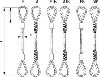 zawiesie linowe jednocięgnowe zaciskane tulejkami cylindrycznymi , typ F ,