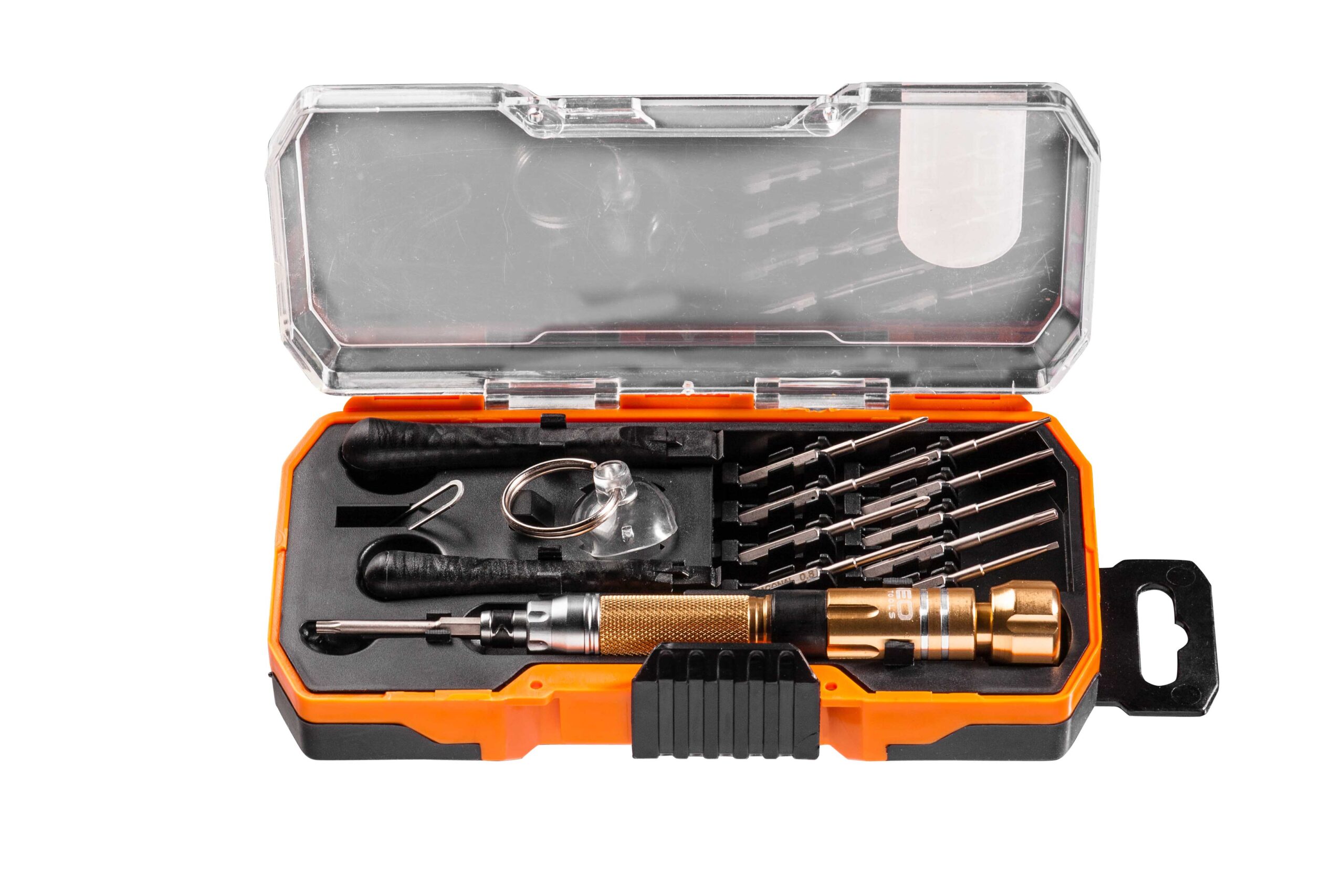 – Zestaw do serwisowania smartfonów zawiera 10 końcówek do popularnych modeli smartfonów.