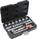 Profesjonalny zestaw narzędziowy, który został opracowany pod kątem potrzeb wyspecjalizowanych serwisów samochodowych i mechanicznych. Klucze nasadowe, jak i napęd nasadek, zostały wykonane z wytrzymałej, narzędziowej stali chromowo-wanadowej CrV 50BV3. Nasadki wyposażone w system AS-Drive, zwiększający maksymalny moment o 25%, przy pełnej ochronie obrzeży nakrętek, nasadki z dwutonowym wykończeniem powierzchni. Nasadki wykonano metodą kucia matrycowego, a przed procesem hartowania poddano je kalibracji za pomocą precyzyjnych przymiarów i urządzeń kontrolnych. Zestaw umożliwia pracę wymagającą bardzo dużych obciążeń i precyzji, pozwala wykonywać wiele czynności serwisowych związanych z odkręcaniem i przykręcaniem połączeń gwintowych o różnych rozmiarach nominalnych. Grzechotka posiada trójkomponentową rękojeść oraz 72 zęby (skok roboczy 5 stopni).