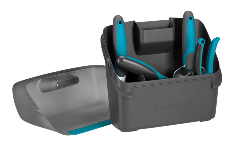 Zawiera wielofunkcyjne pudełko do przechowywania narzędzi z przykrywką, która może pełnić również funkcję szufelki. W zestawie znajduje się także łopatka do kwiatów, pazurki, sekator oraz zmiotka.