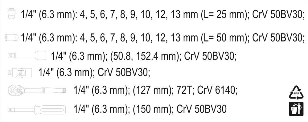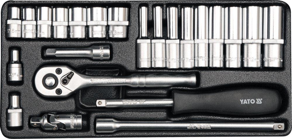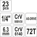 Zestaw kluczy nasadowych sześciokątnych oraz akcesoria 1/4″, 23 szt.