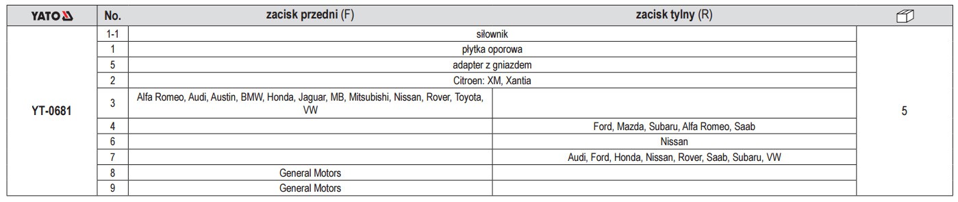 Przeznaczony do samochodów: Citroen: Xm, Xantia Alfa Romeo Audi Austin BMW Honda Jaguar MB Mitsubishi Nissan Rover Toyota VW Ford Mazda Subaru Saab Rover, GM. Zestaw opracowany pod kątem potrzeb wyspecjalizowanych serwisów samochodowych i mechanicznych.