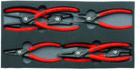 Sześć precyzyjnych szczypiec do pierścieni osadczych w piankowej tacce