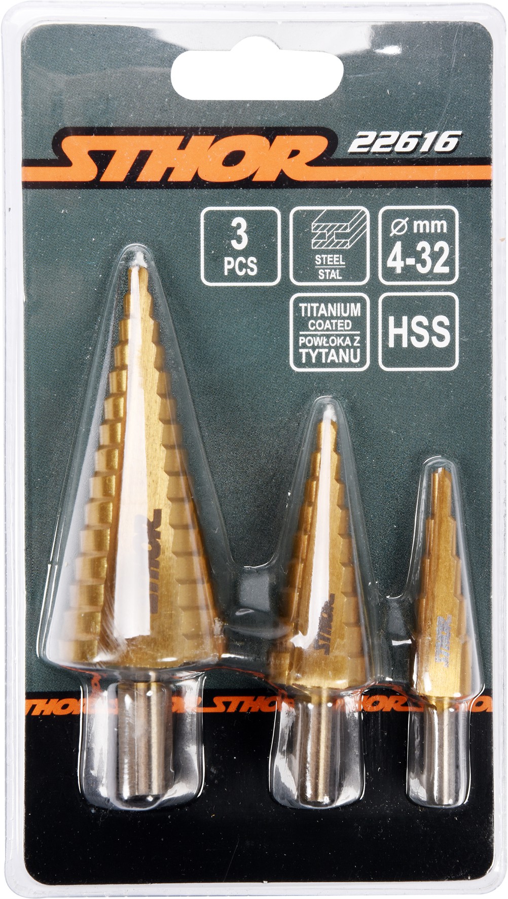 Zestaw wierteł stopniowych marki STHOR 22616.