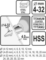 • wykonane ze stali szybkotnącej HSS, pokrytej azotkiem tytanu
