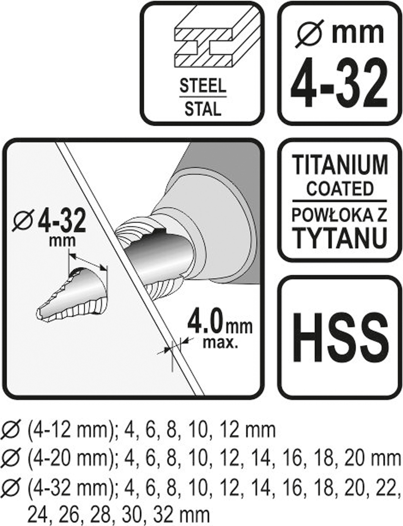 Przeznaczone do wiercenia w wysokogatunkowej stali nierdzewnej, konstrukcyjnej i walcowanej na zimno, w metalach kolorowych, blachach stalowych,tworzywach sztucznych.