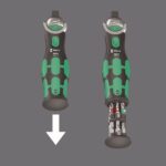 Magnetyczne mocowanie bezpośrednie umożliwia zastosowanie grzechotki 3/8″ jako wkrętaka z grzechotką do bitów z uchwytem 1/4″