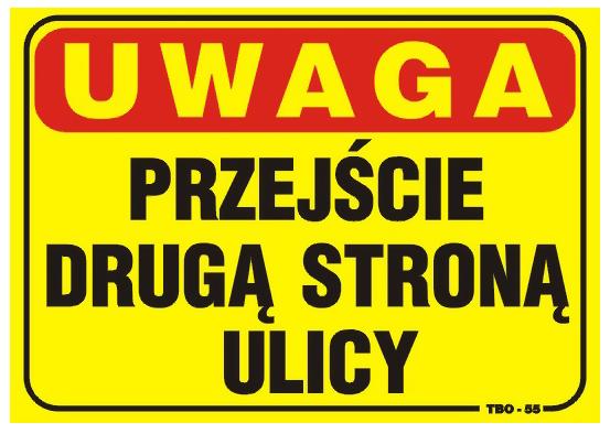 TABLICA 35*25CM UWAGA! PRZEJŚCIE DRUGĄ STRONĄ ULICY